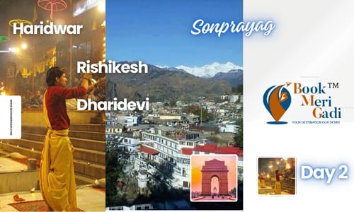 Day 2: Haridwar to Sonprayag – Morning: Enjoy breakfast at the hotel, then depart from Haridwar for Sonprayag (approx. 8–9 hour drive, 235 km) via NH7 through the majestic Garhwal Himalayas; Note: If Haridwar sightseeing was not done on Day 1, visit Har Ki Pauri (sacred Ganga ghat), Mansa Devi Temple (via ropeway), and Chandi Devi Temple in the morning; En route sightseeing: In Rishikesh, explore Triveni Ghat, Laxman Jhula, Ram Jhula, Parmarth Niketan Ashram, and Sivananda Ashram; stop at Dharidevi Temple (Goddess Kali shrine on the Alaknanda River near Srinagar) for blessings and scenic views; witness river confluences at Devprayag (Alaknanda + Bhagirathi = Ganga) and Rudraprayag (Alaknanda + Mandakini); Evening: Arrive and check-in at hotel in Sonprayag. Dinner: Enjoy a warm dinner at the hotel. Overnight Stay: Sonprayag.